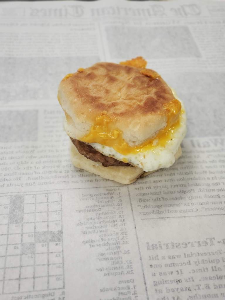 Choice of Protein (Bacon, Sausage, Ham or Turkey), Fried Egg, Cheddar Cheese toasted in a Buttermilk Biscuit