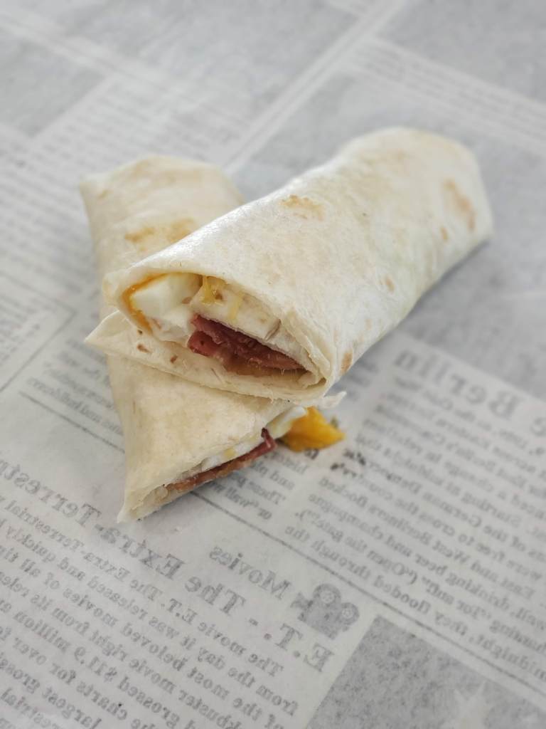 Choice of Protein (Bacon, Sausage, Ham or Turkey), Fried Egg, Cheddar Cheese toasted in a Flour Tortilla