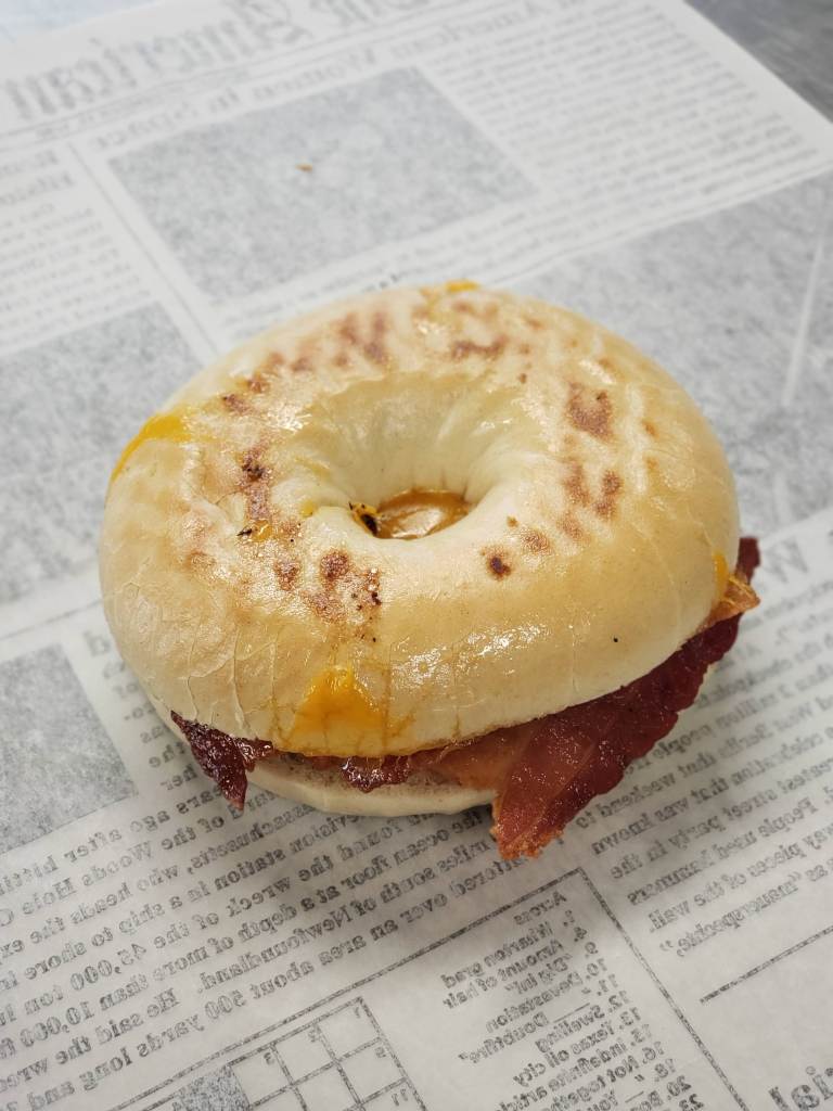 Choice of Protein (Bacon, Sausage, Ham or Turkey), Fried Egg, Cheddar Cheese toasted in a Plain Bagel