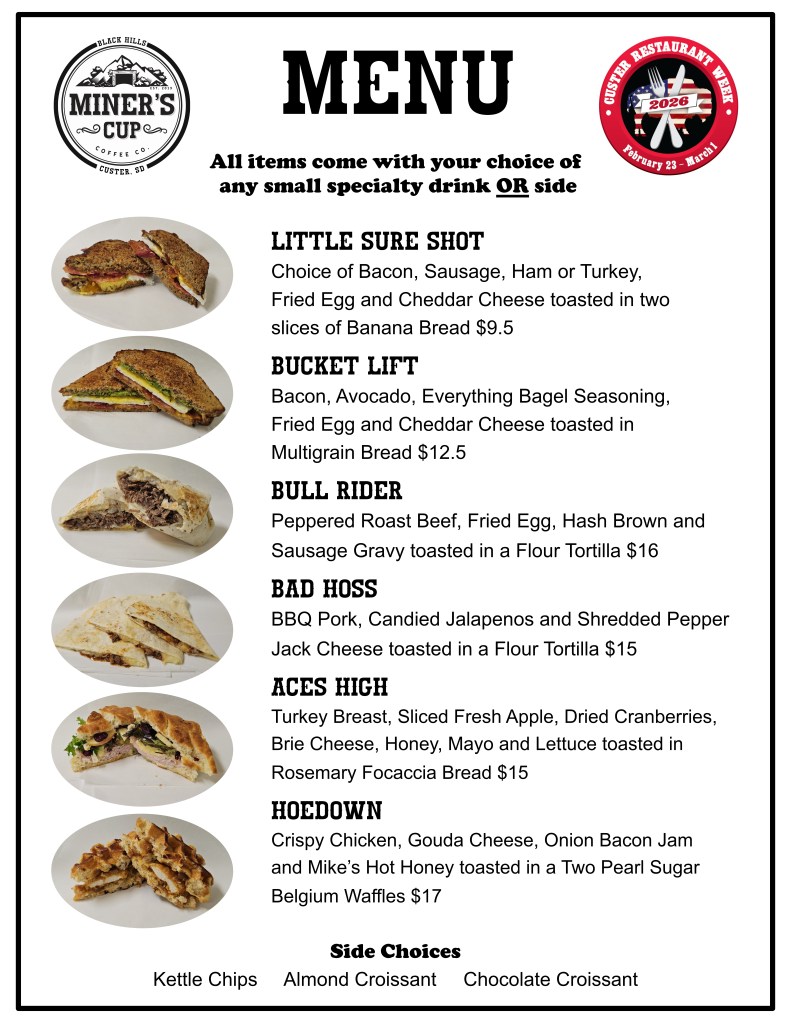 2026 Custer Restaurant Week February 23rd – March 1st Order Now Share this: Share on Facebook (Opens in new window) Facebook Share on X (Opens in new window) X Share on Pinterest (Opens in new window) Pinterest