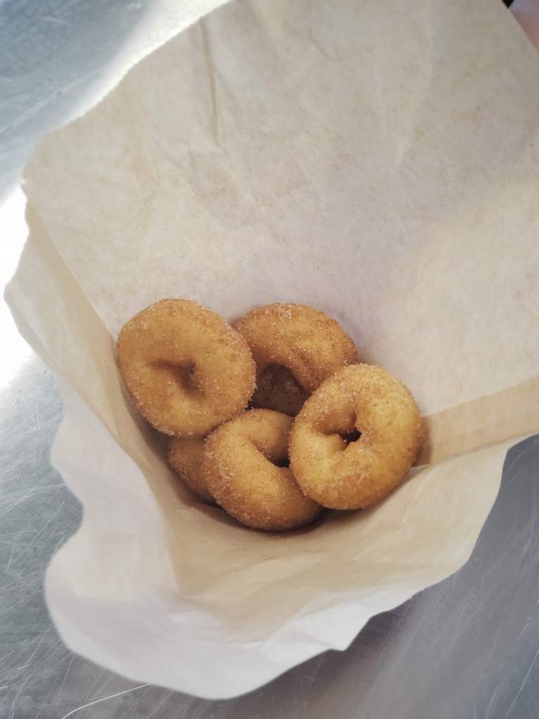 5 Warm Mini Cake Donuts Dusted in Cinnamon Sugar