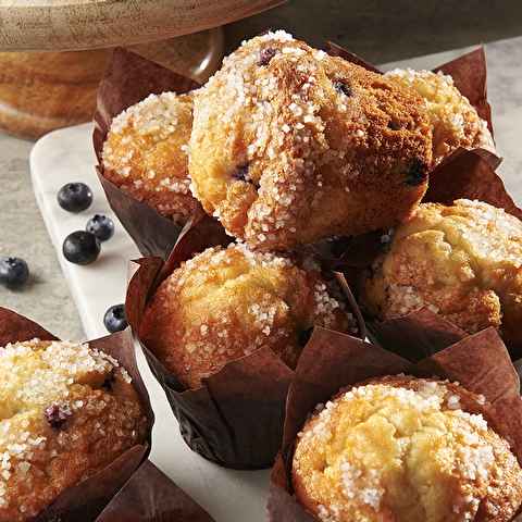 Our blueberry buttermilk muffin is loaded with juicy Georgia wild blueberries and a touch of creamy buttermilk topped with coarse sugar for a nice crunch.