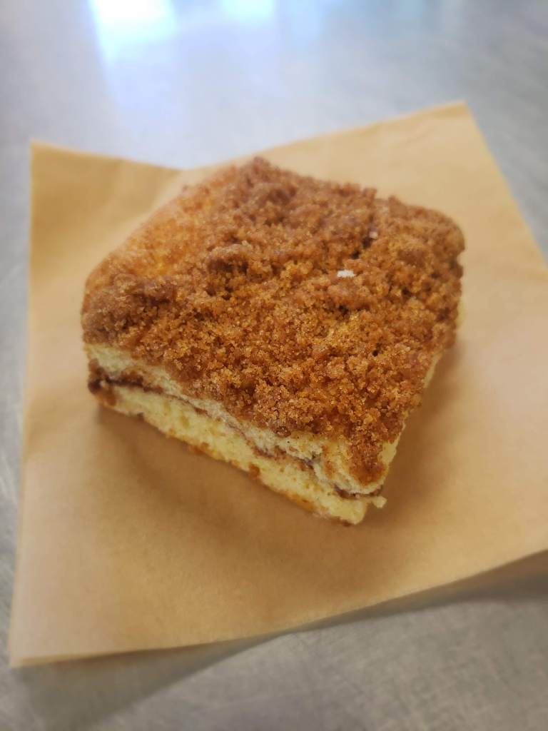 Delicious layers of moist vanilla cake, cinnamon, sugar and topped with cinnamon-brown sugar streusel