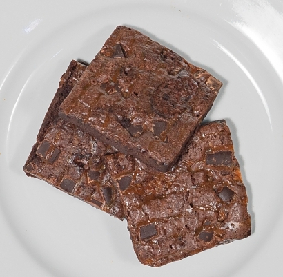 Thick rich fudge brownie with caramel throughout and chocolate frosting.